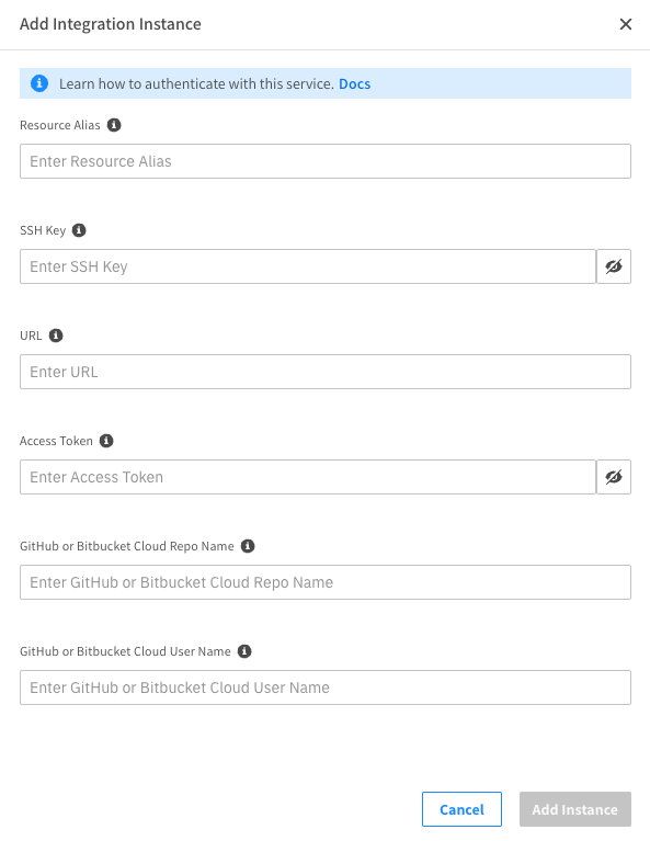 In the Integrations section, select GitHub/Bitbucket Cloud and click Add Integration.